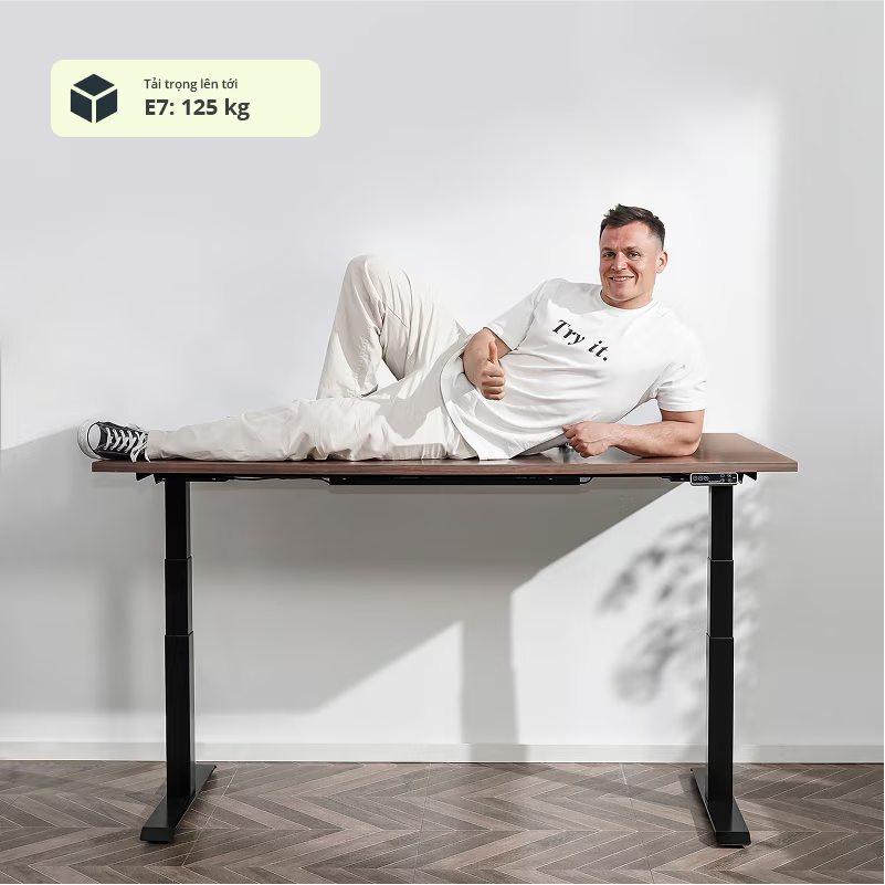 Với khả năng chịu tải 125 kg, E7 có thể dễ dàng chịu được trọng lượng của cả một người lớn ở trên, trở thành giải pháp hoàn hảo cho một trạm làm việc đa nhiệm.