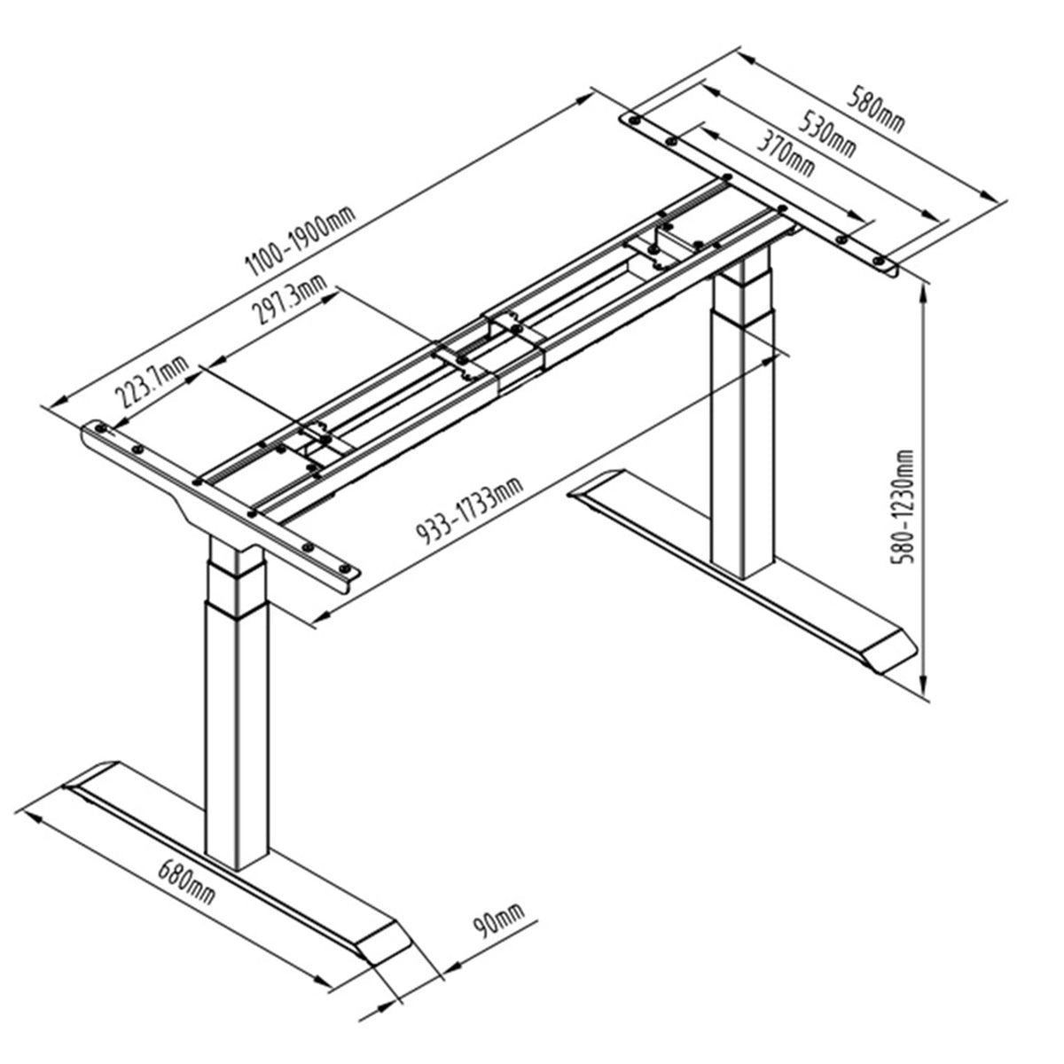 580 mm - 1230 mm