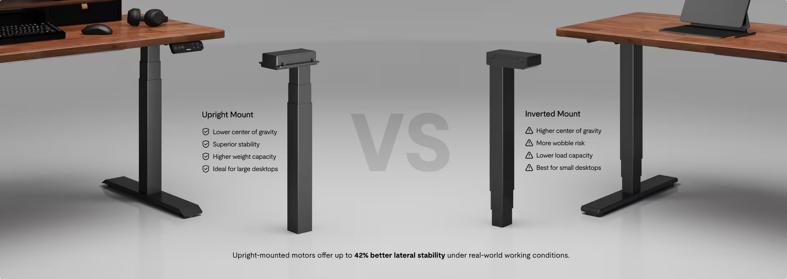 Bàn làm việc đứng E7 được thiết kế đặc biệt để chắc chắn và sẽ giữ vững ở mọi độ cao, ngay cả khi khối lượng công việc của bạn tăng cao.