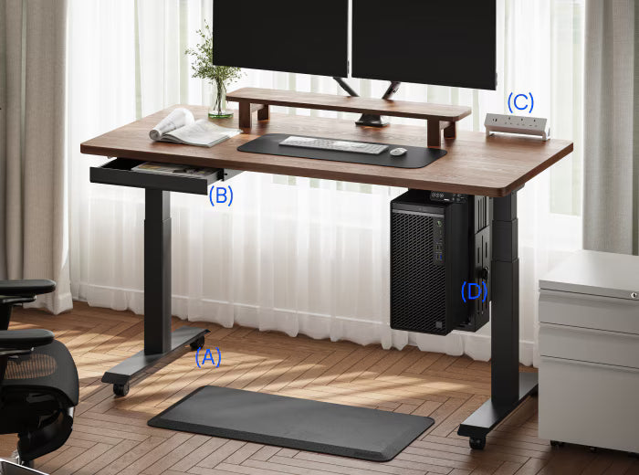 Dễ dàng di chuyển bàn làm việc của bạn với bánh xe dễ lắp đặt và dễ lăn. Hai bánh xe có khóa đảm bảo sự ổn định trong quá trình sử dụng.