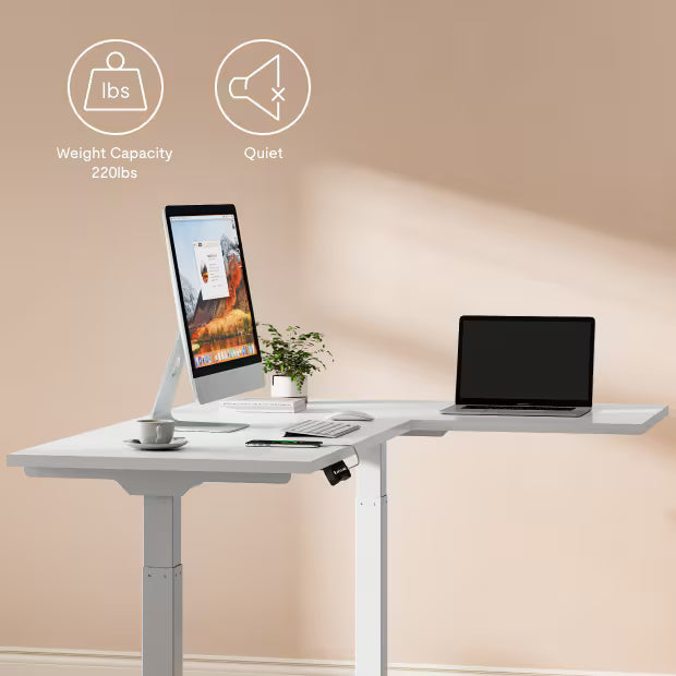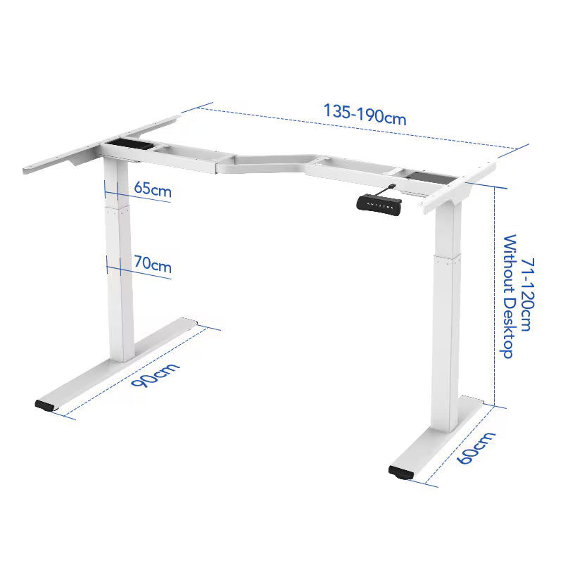 Cơ chế nâng hạ bằng động cơ kép mang lại khả năng điều chỉnh độ cao mượt mà hơn, từ 71 cm đến 120 cm, và hoạt động cực kỳ êm ái (dưới 50 dB) khi nâng và hạ bàn.